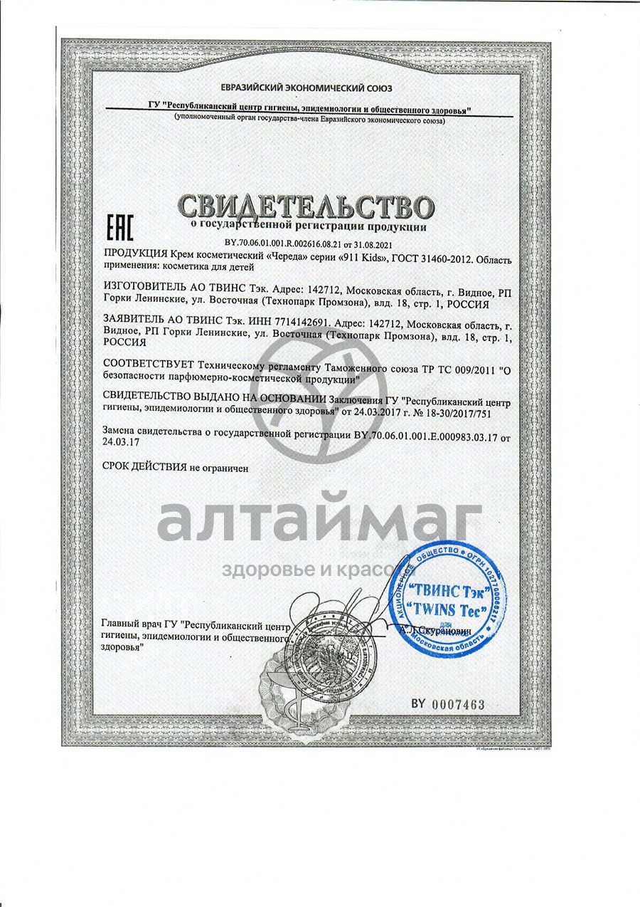 - Купите Крем детский ЧЕРЕДА под подгузник от опрелостей 911 KIDS в Бресте по доступной цене 297 ₽ с доставкой на дом или заберите Ваш заказ в Бресте из ближайшего пункта выдачи, сделав заказ на AltaiMag.ru.