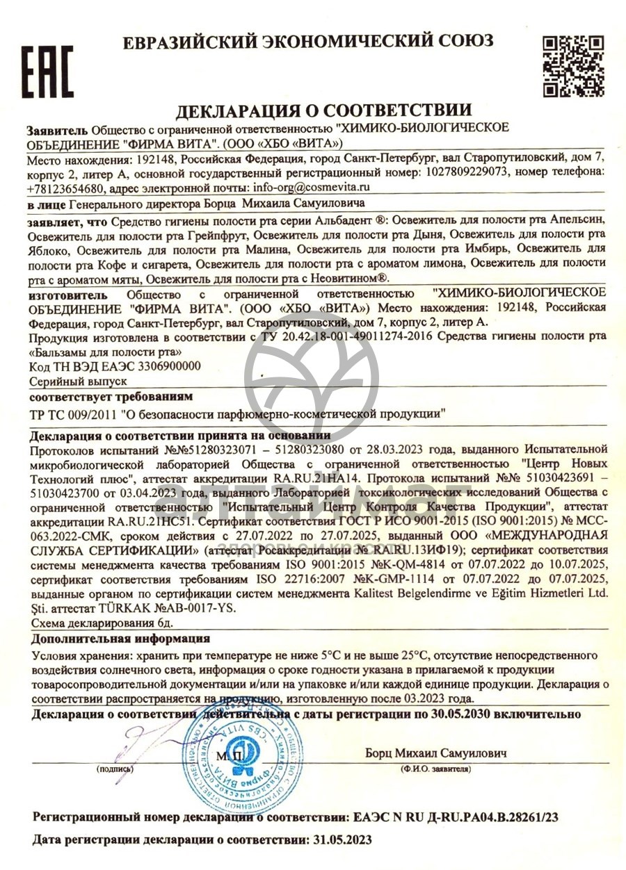 Есть вопросы по товару "Освежитель для рта «Альбадент лимон», 35 мл"?