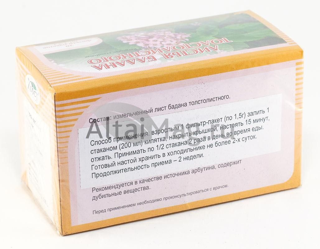 - Купите Бадан толстолистный, листья, 20 пакетиков (Хорст) в Бресте по доступной цене 135 ₽ с доставкой на дом или заберите Ваш заказ в Бресте из ближайшего пункта выдачи, сделав заказ на AltaiMag.ru.