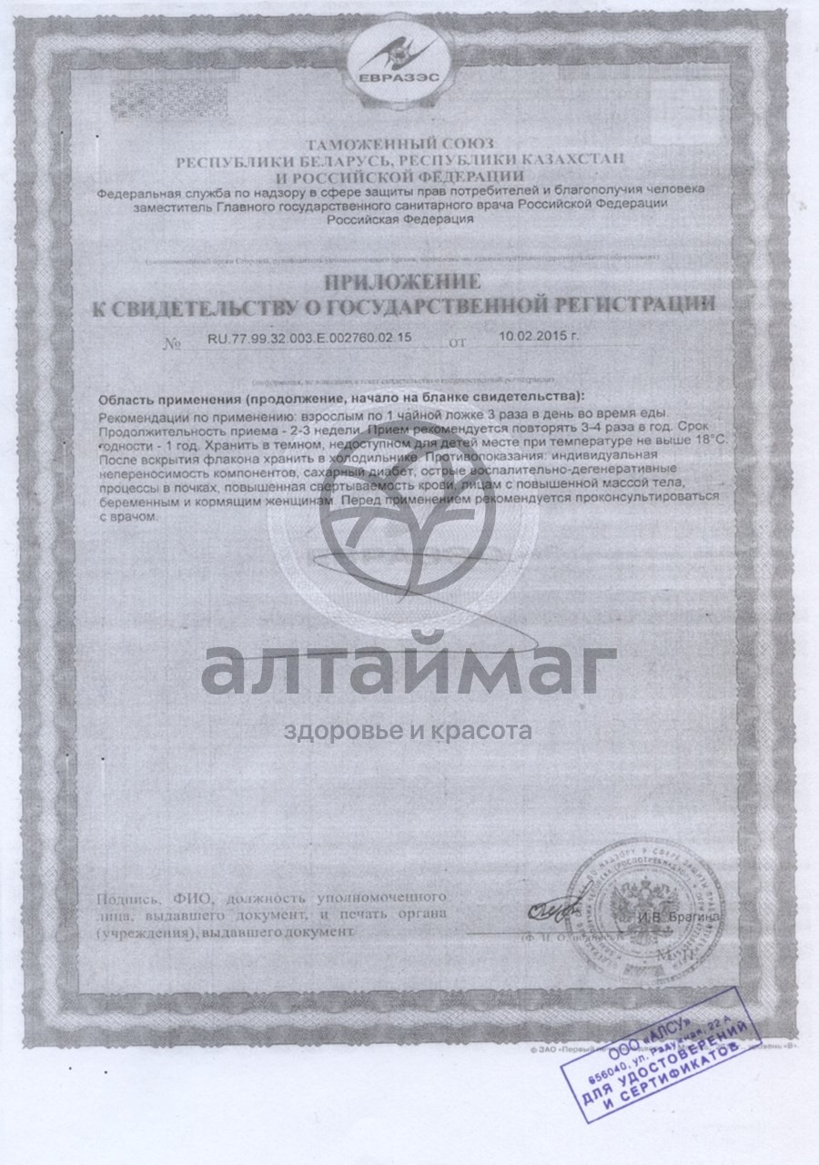 Принимать взрослым по 1 чайной ложке 3 раза в день во время еды. Длительность приема 2-3 недели. Рекомендуется проведение 3-4 курсов в год.