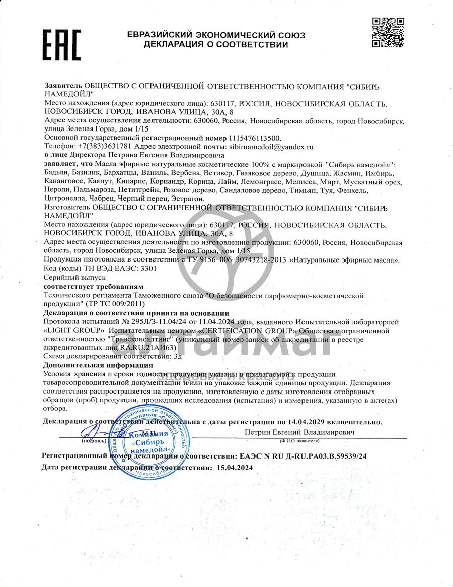 - Чтобы купить Эфирное масло ваниль Сибирь Намедойл 15мл совершите всего несколько шагов: укажите количество продукта и нажмите на кнопку «Купить».