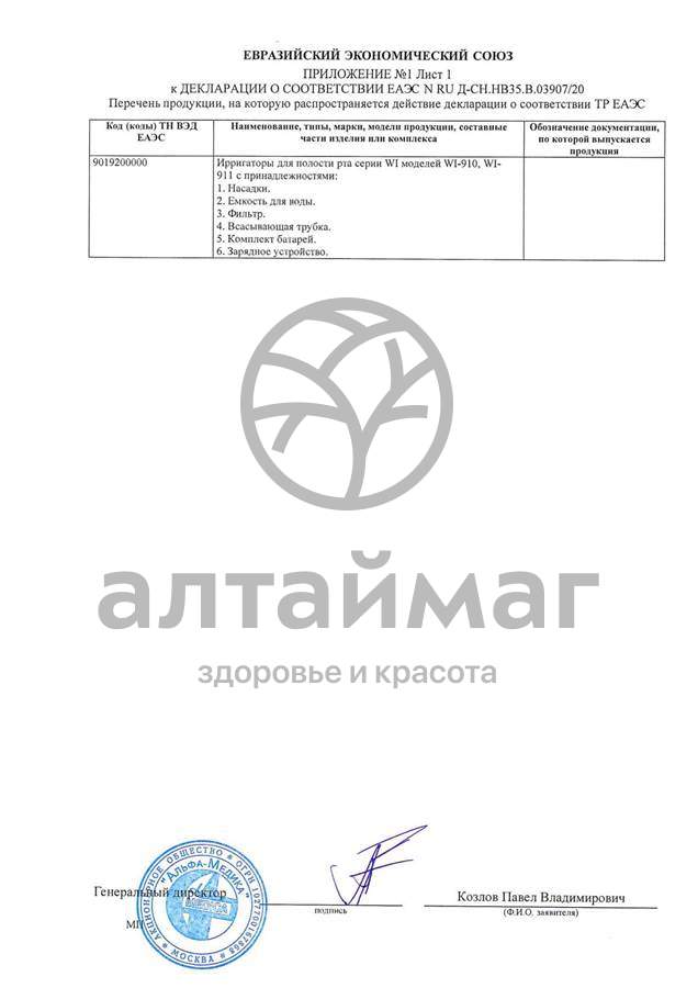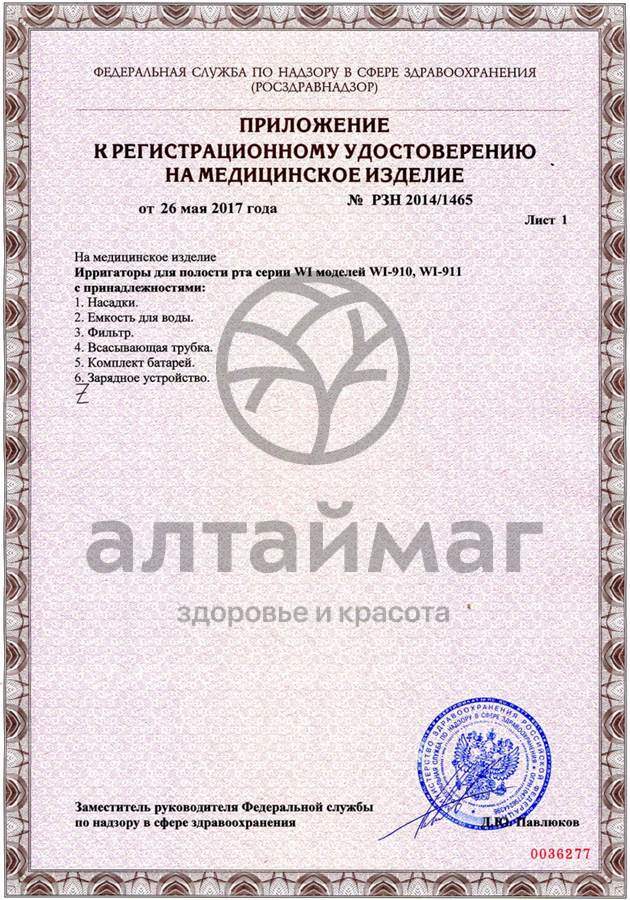 - Ирригатор для полости рта WI-911 (основной блок) – 1 шт.