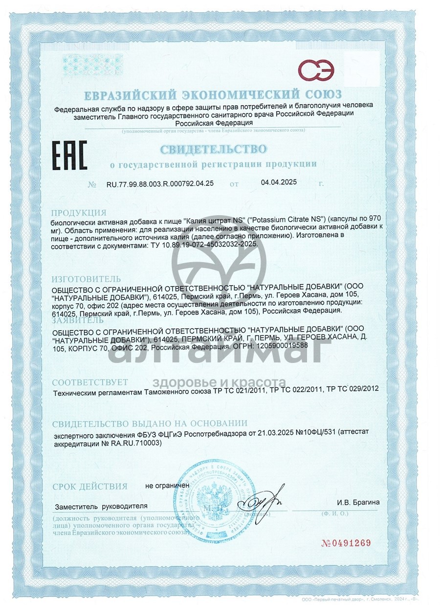 - Купите Калия Цитрат БАД Naturalsupp 60 капсул в Бресте по доступной цене 330 ₽ с доставкой на дом или заберите Ваш заказ в Бресте из ближайшего пункта выдачи, сделав заказ на AltaiMag.ru.