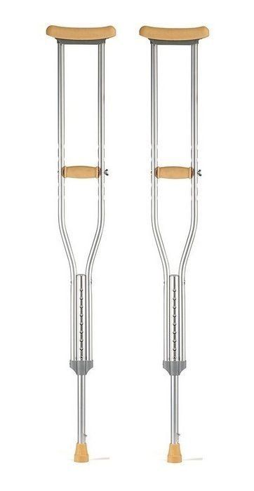 Модель алюминиевых костылей с регулируемой по высоте рукояткой и мягким подмышечным валиком.