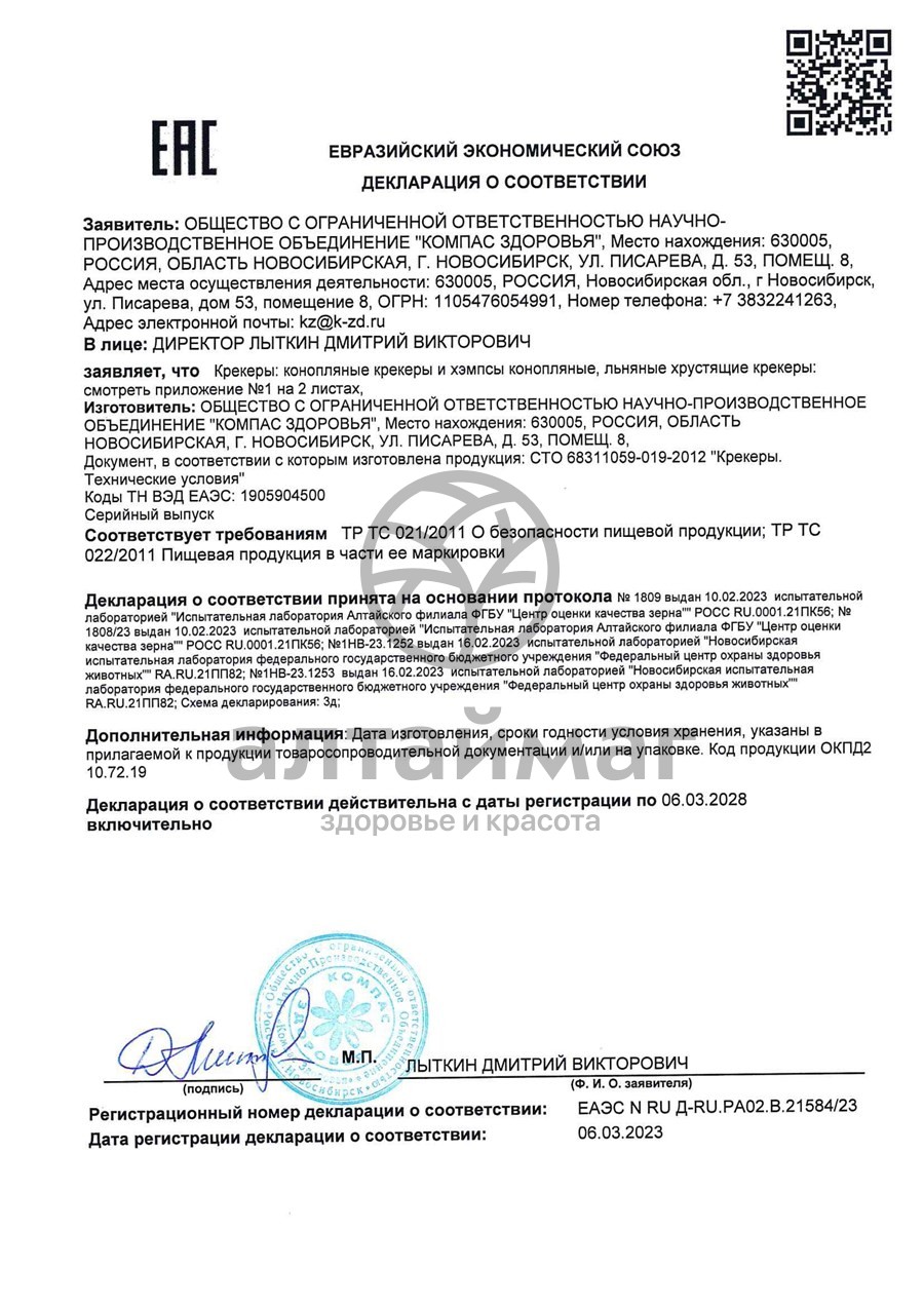 Льняные крекеры – это лакомство, наполненное пользой. Одной порции крекеров хватит для сытного перекуса, а удобный формат позволит взять угощение с собой. Продукт не содержит: красители, ГМО, консерванты, молоко, яйца, глютен.