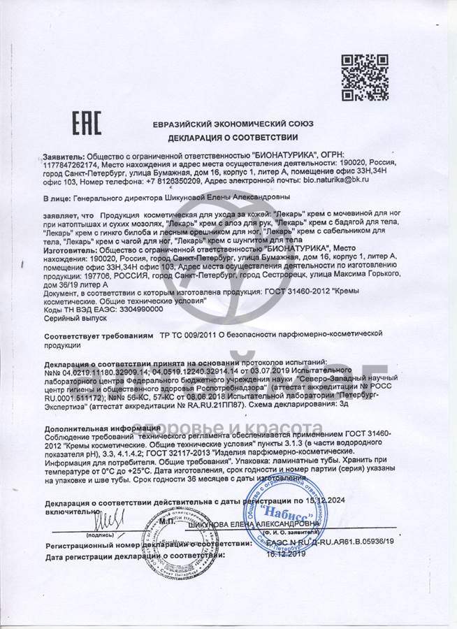 Есть вопросы по товару "Лекарь крем для ног С Чагой 75мл"?