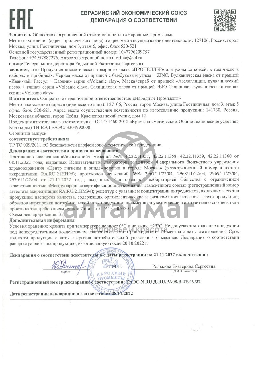 Есть вопросы по товару "Маска от прыщей Пропеллер вулканическая 40мл"?