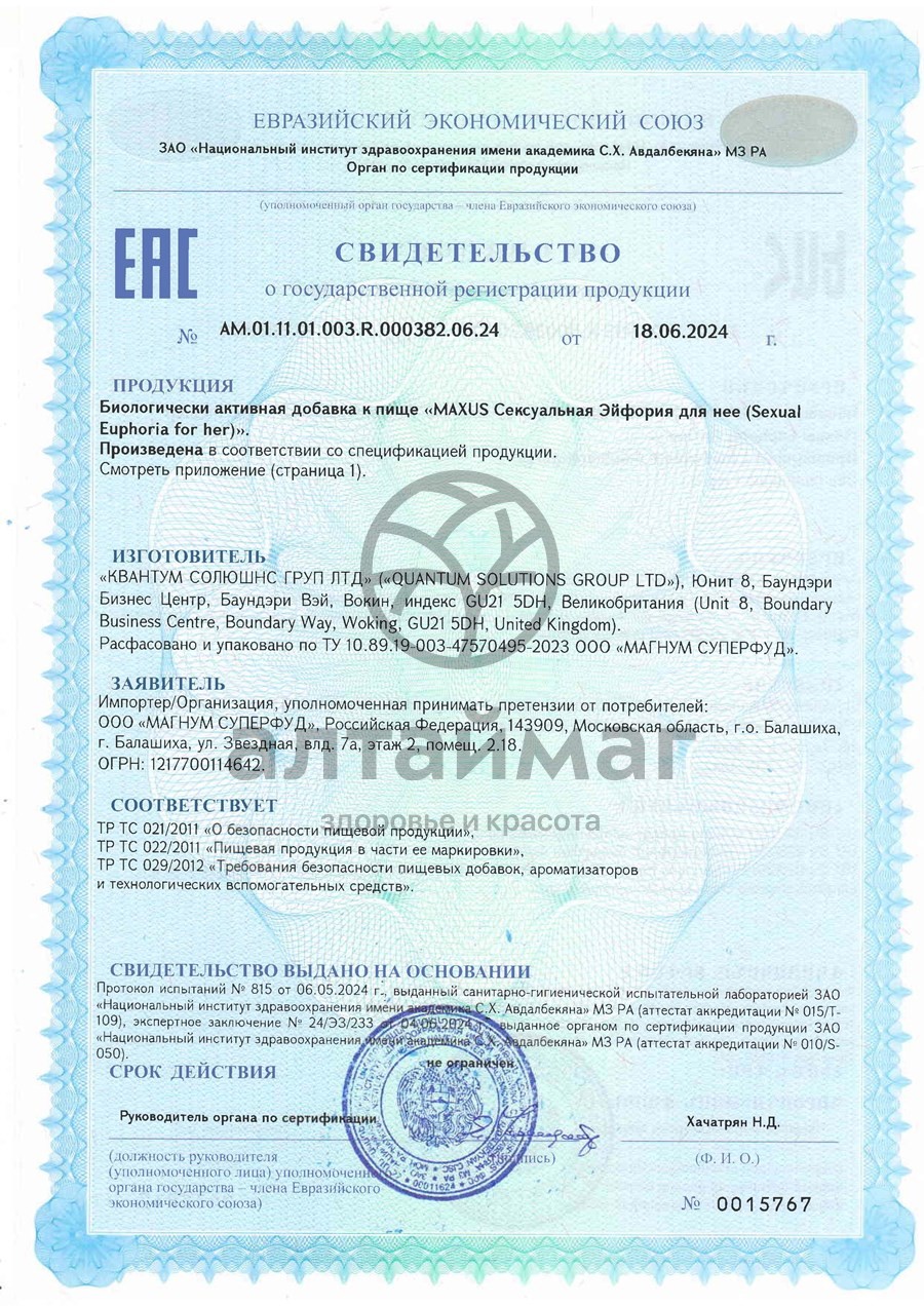 - Купите Maxus Sexual Euphoria для нее 60 капсул в Бресте по доступной цене 949 ₽ с доставкой на дом или заберите Ваш заказ в Бресте из ближайшего пункта выдачи, сделав заказ на AltaiMag.ru.