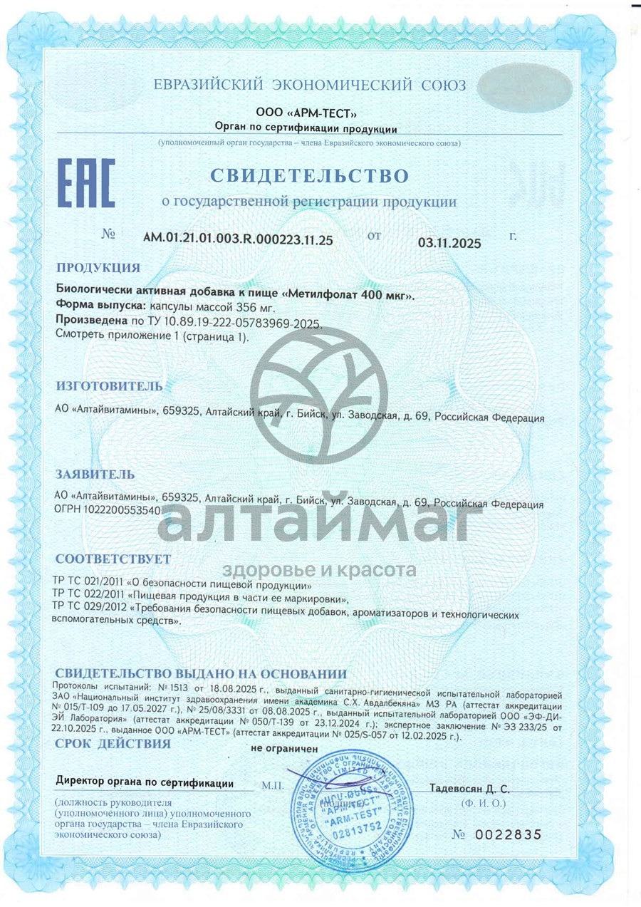 - Чтобы купить Метилфолат БАД Алтайвитамины 60 капсул совершите всего несколько шагов: укажите количество продукта и нажмите на кнопку «Купить».
