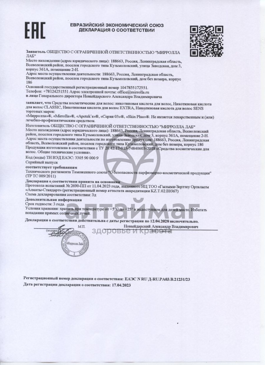 - Купите Никотиновая кислота Мирролла для волос 65мл в Бресте по доступной цене 125 ₽ с доставкой на дом или заберите Ваш заказ в Бресте из ближайшего пункта выдачи, сделав заказ на AltaiMag.ru.