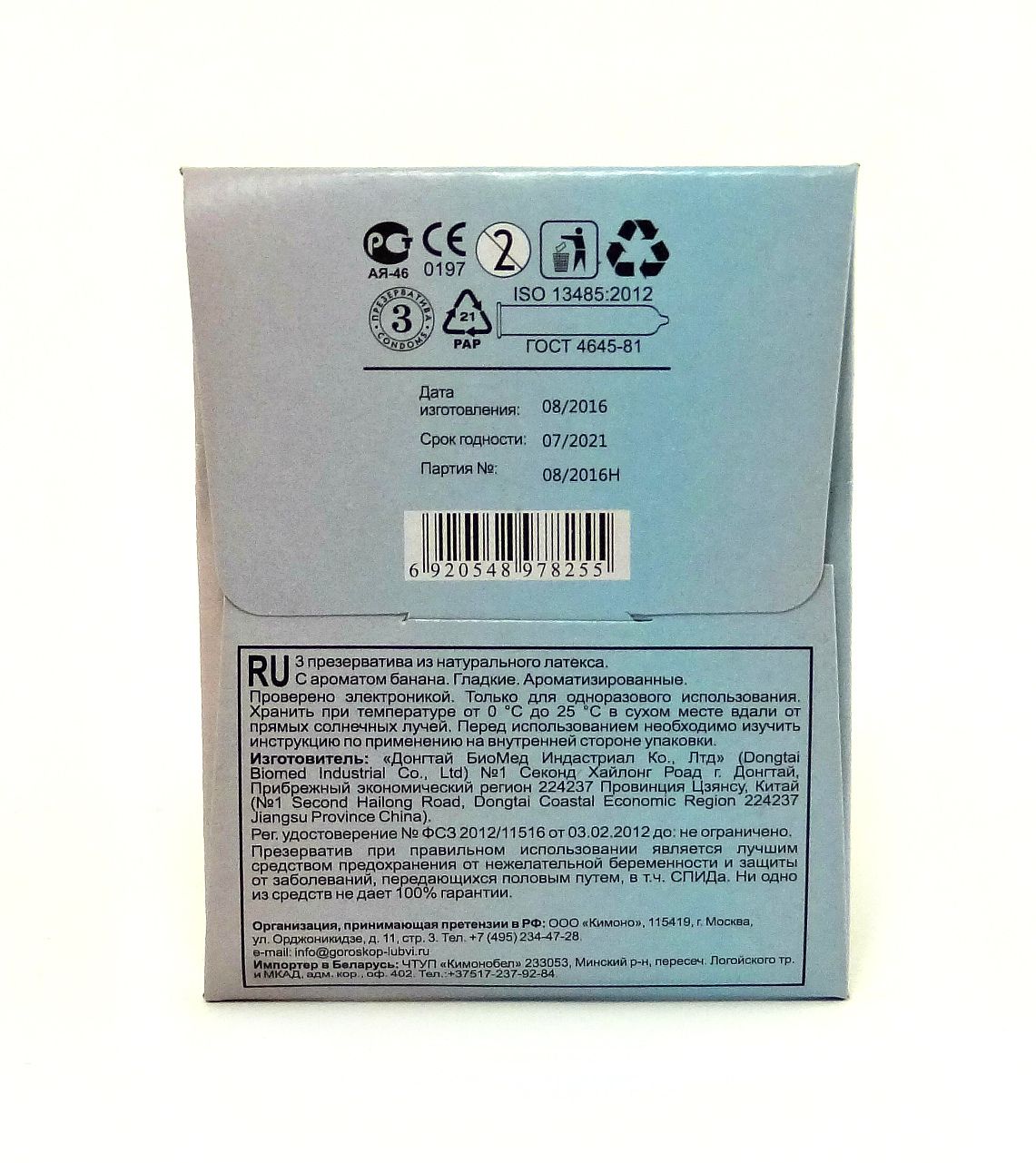 3 презерватива из натурального латекса в силиконовой смазке с ароматом банана, с гладкой текстурой поверхности для натуральных ощущений. В блоке 48 штук.