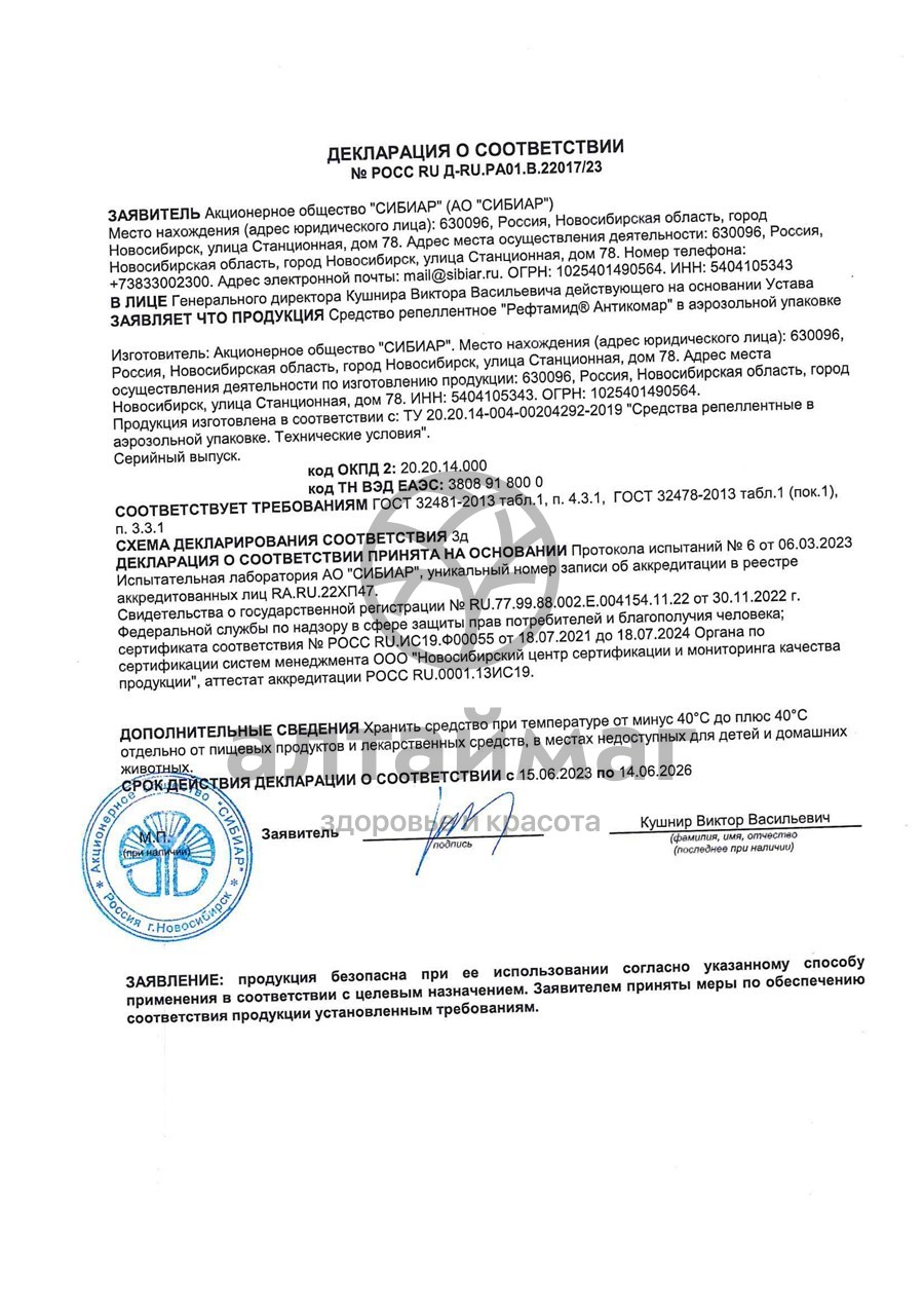Рефтамид аэрозоль антикомар 145мл в Бресте
