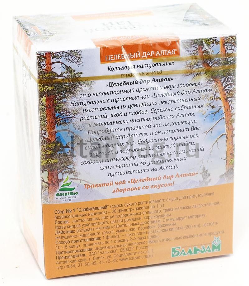 - Купите Слабительный сбор №1, 20 пакетиков в Бресте по доступной цене 121 ₽ с доставкой на дом или заберите Ваш заказ в Бресте из ближайшего пункта выдачи, сделав заказ на AltaiMag.ru.