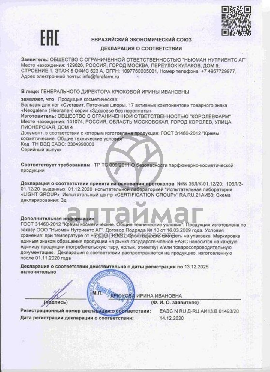 Суставит пяточные шпоры Бальзам для стоп 125мл в Бресте