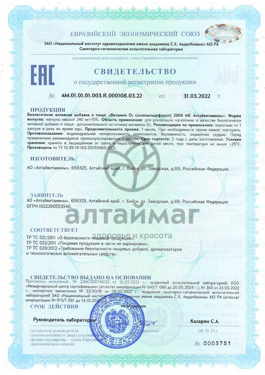 Есть вопросы по товару "Витамин D3 2000ME Алтайвитамины №60"?